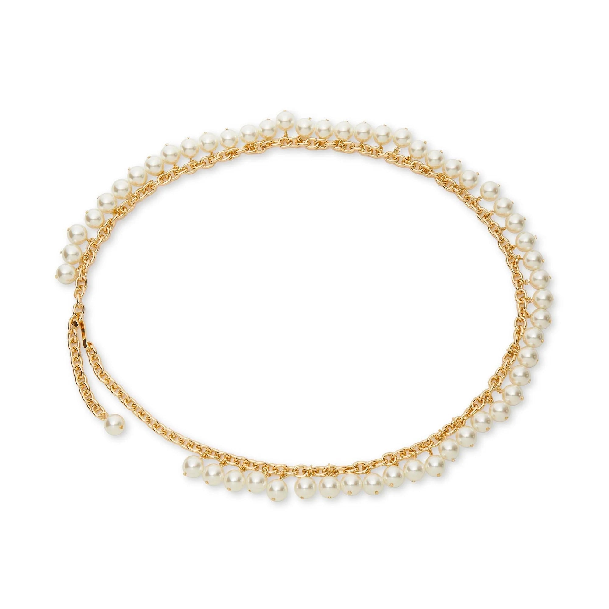 ∙ 14K gold-plated chain∙ Dangling 5/8" faux pearl charms∙ Adjustable hook closure for a customized fit∙ Adjustable sizing up to 38"∙ Store in custom striped pouch