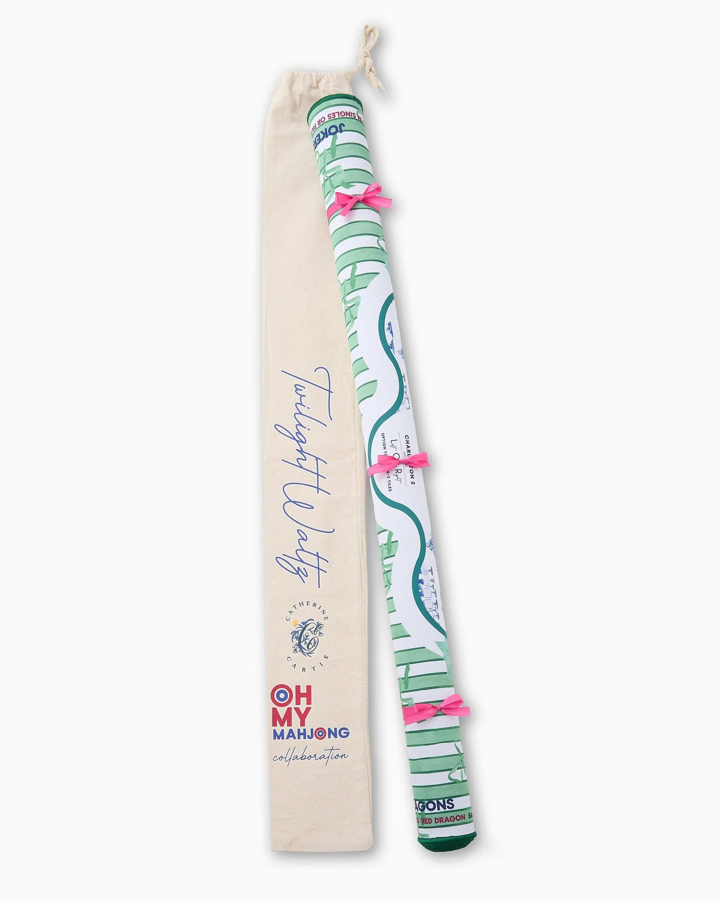 Step into a snowy dreamscape with the Twilight Waltz Mat, a magical holiday collaboration with Fort Worth-based watercolor artist Catherine Cartie. Inspired by the timeless charm of The Nutcracker ballet, this mat captures the elegance and enchantment of the season with swirling dancers, festive flourishes, and delicate nods to the classic tale. Complete with wintry shades of blue and white with cheerful pops of green and red, the Twilight Waltz Mat brings storybook beauty and holiday sparkle to your Mahjong table.