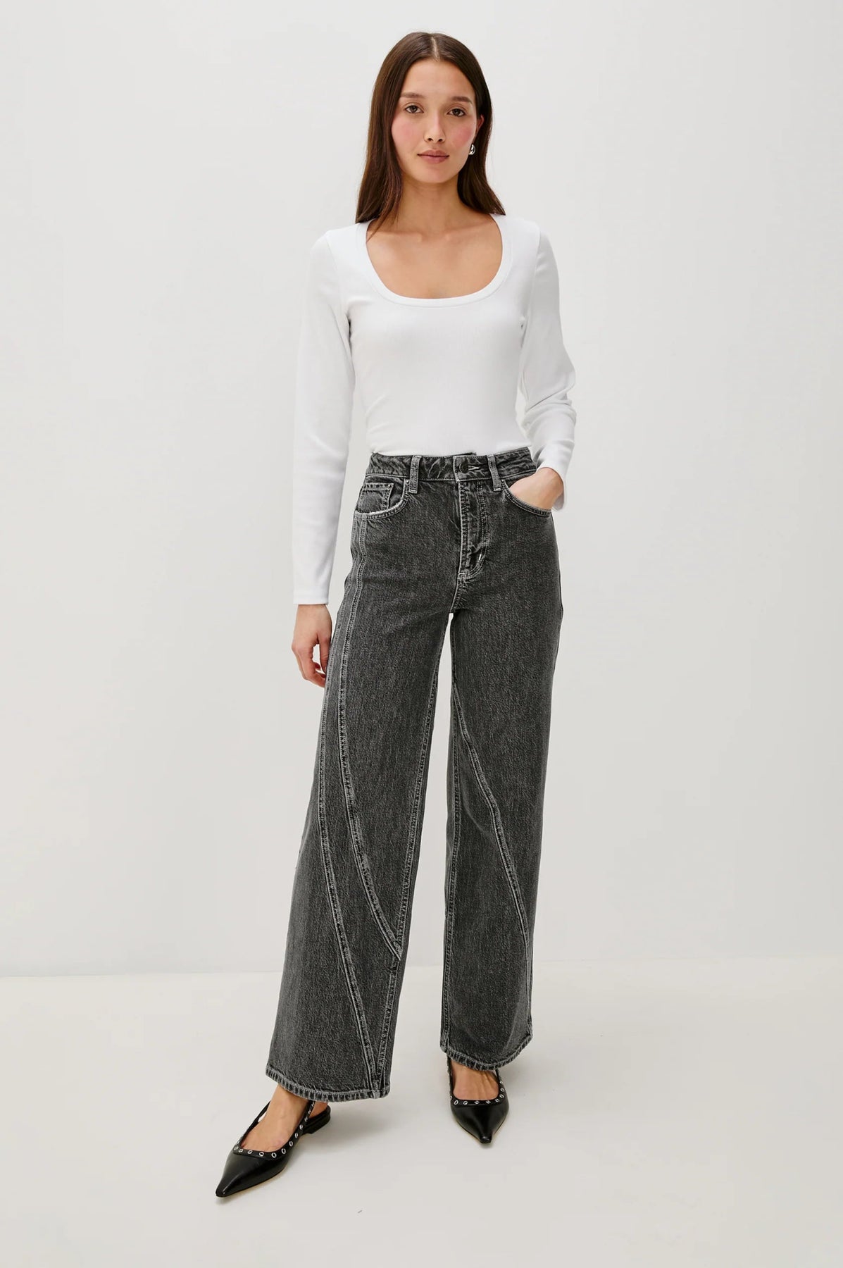 Level up your denim collection with the ultra-elevated Getty Twist Seam, featuring diagonal statement seams that elongate the silhouette. High-rise with a wide-leg fit, these are bound to elicit compliments wherever you go.