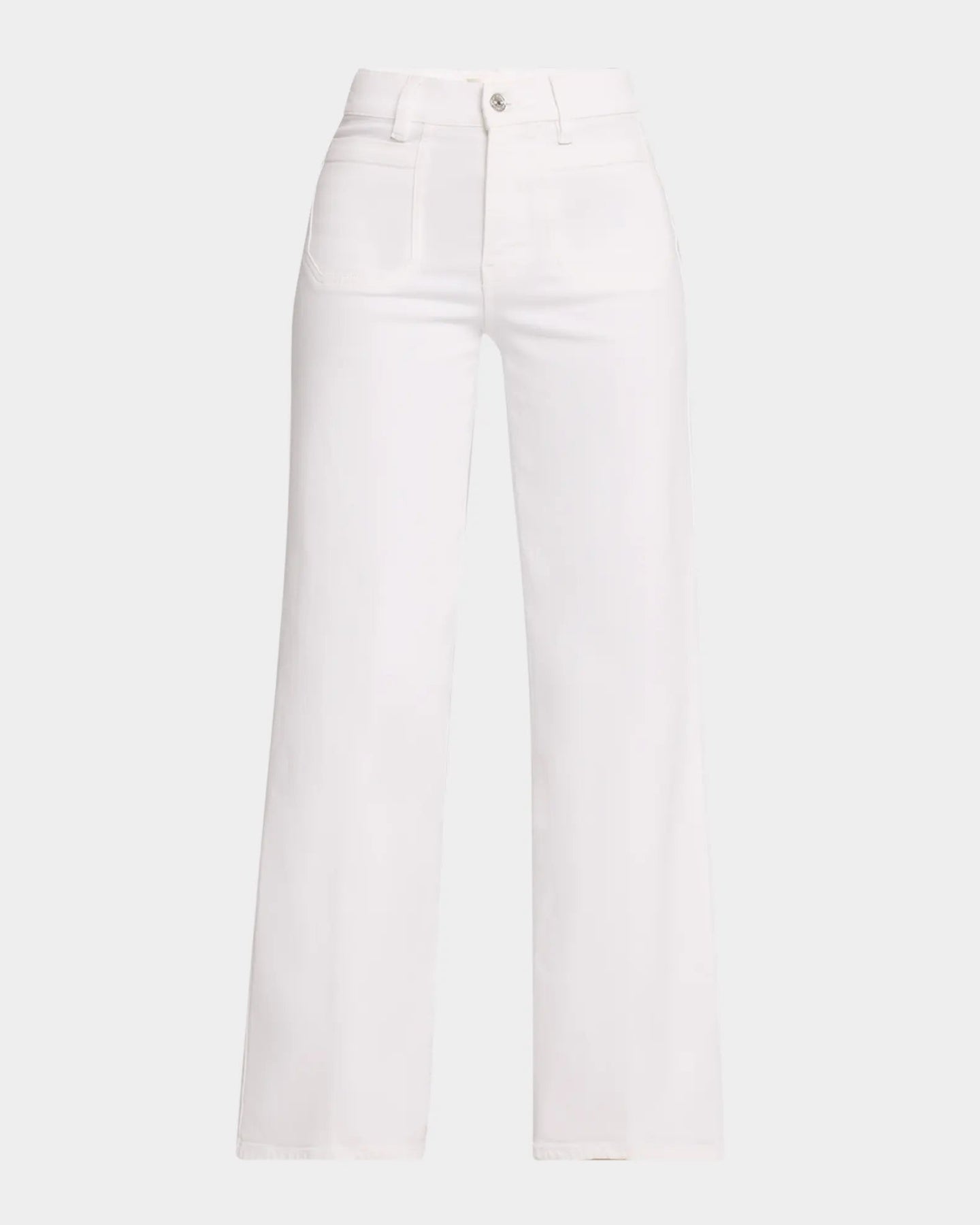 • FRAME "Le Slim Palazzo Modernist Pocket" jeans in crisp white ultra-stretch denim