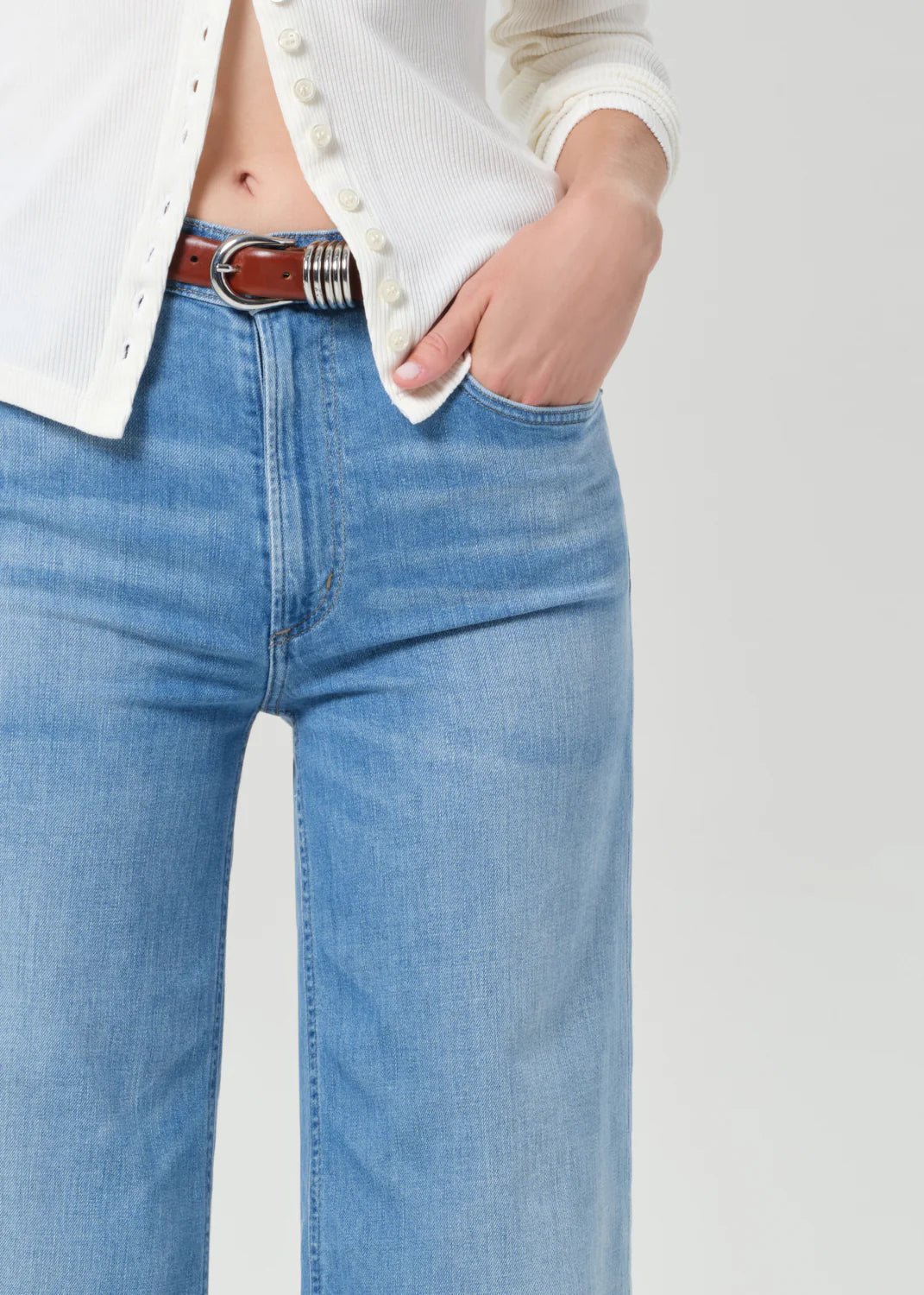 The Lyra Wide Leg Long is a vintage-inspired silhouette that sits high on the waist with an easy, relaxed top block and a full-length inseam. Crafted from soft-stretch regenerative cotton denim, it offers the perfect balance of structure and comfort. A timeless shape with a modern sensibility—effortless, elongated, and endlessly versatile.
