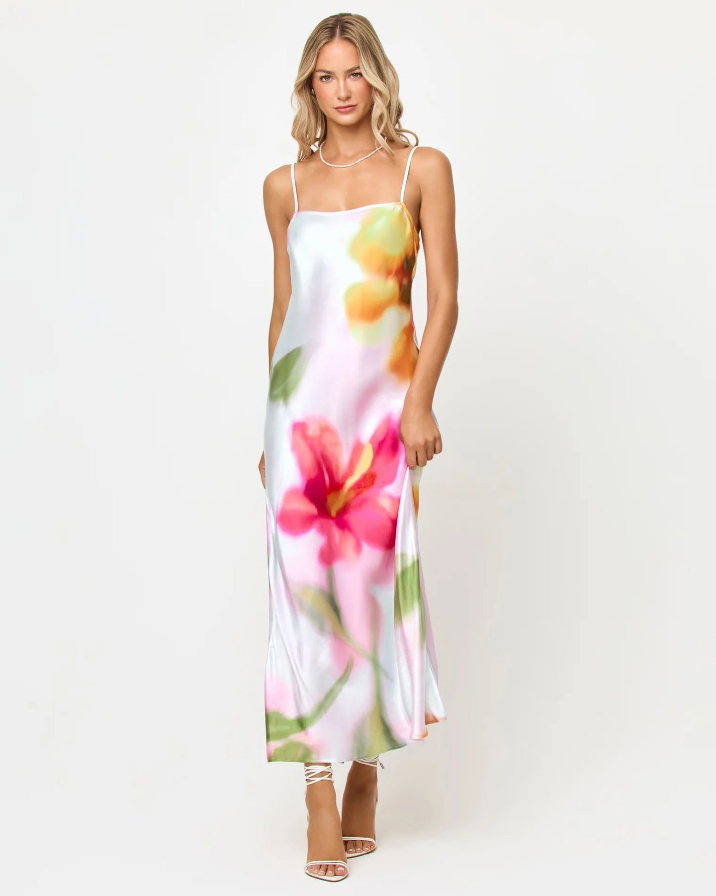 Slip into the Gabby Maxi and you'll be ready for absolutely anything. This dreamy bias cut slip dress showcases an A-line skirt, straight front neckline, spaghetti shoulder straps with adjusters, and adjustable back tie with “V” cutout detail. This unlined cutie moves with you and the bold floral print looks like a piece of art.