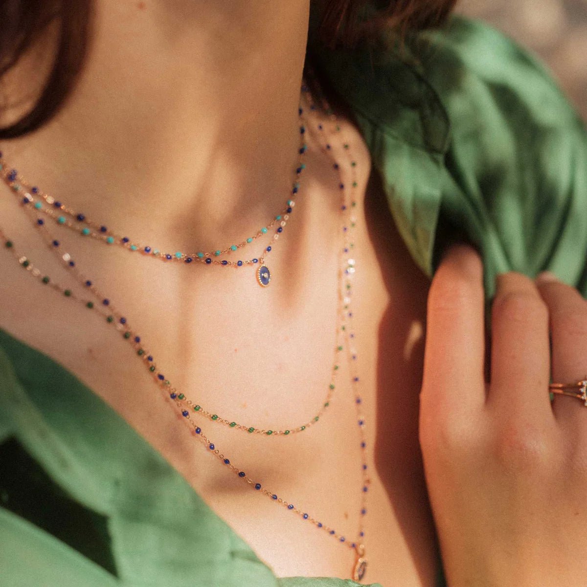 The Classic Gigi necklace by gigi CLOZEAU is the perfect embodiment of the spontaneity and hope that life has to offer. This piece features 18 carat gold, varying 16.5" options and simple white jewels.