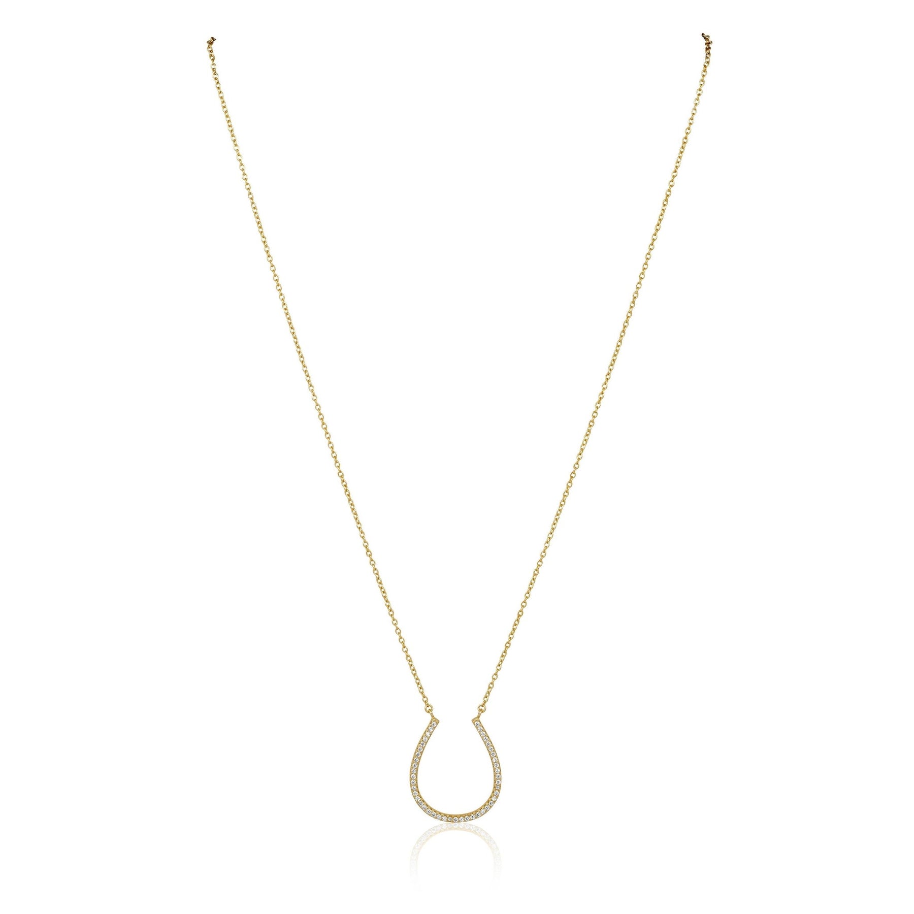 Attract luck, blessings, and fortune when you wear the Lucky Horse Shoe necklace. -18k gold plated over sterling silver -20mm pendant width -18" chain -Water & tarnish resistant -Embellished with cz stones