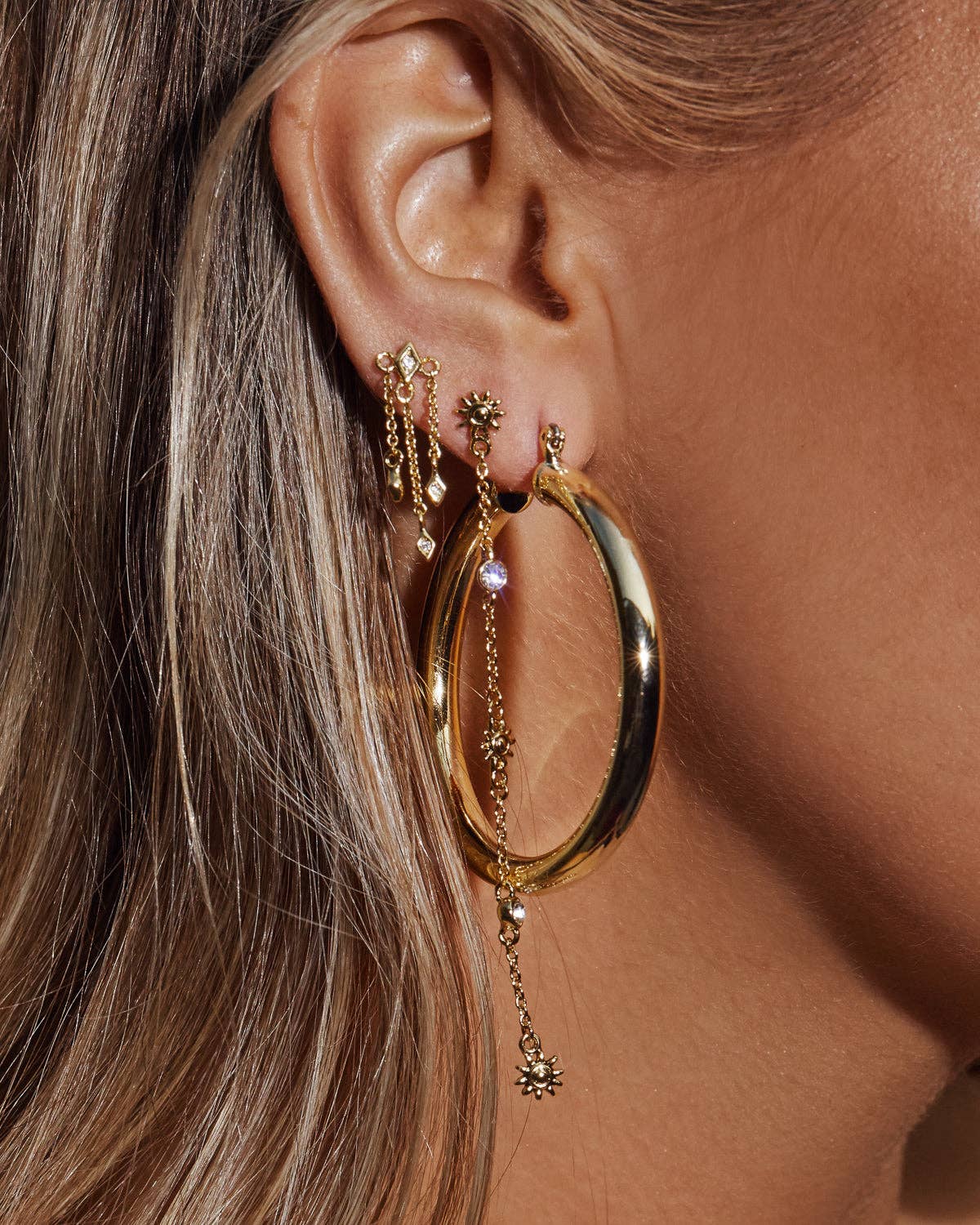 * Our best-selling pair of large hollow + lightweight metal tube hoops that are perfect for everyday wear * Sold a pair for pierced ears * Outside Diameter: 2" (50 mm) * Tubing is 4.5 mm wide * Each hoop weighs 6 grams (considered medium weight) * Made from plated brass * Plating is 0.3 microns + e-coating for long lasting durability * Plated high polish 14K Antique Gold for maximum shine * Posts are made from surgical steel so they are very hypo-allergenic for sensitive ears * Earrings are 100% nickel-free and cadmium-free * Available in Silver and Rose Gold too * Available in a Medium and Mini size too * Available in a pave version too * As seen on Bella Hadid, Madison Beer, Vanessa Hudgens, and Candice Swanepoel * 1 year warranty * Packaged in Luv Aj branded gift boxes