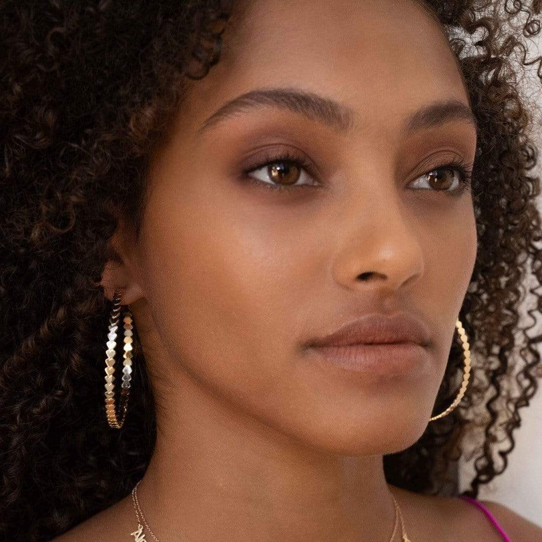 These beautifully polished heart earrings in a huggie hoop formation offer a tender reminder that love makes the world go round.