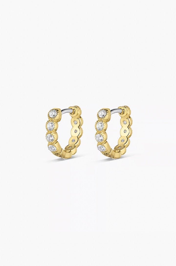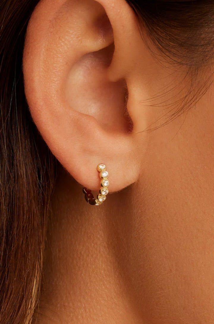 These huggie earrings are the perfect addition to any ear stack, with their gold-plated finish and shimmering details adding a fun touch to your look.