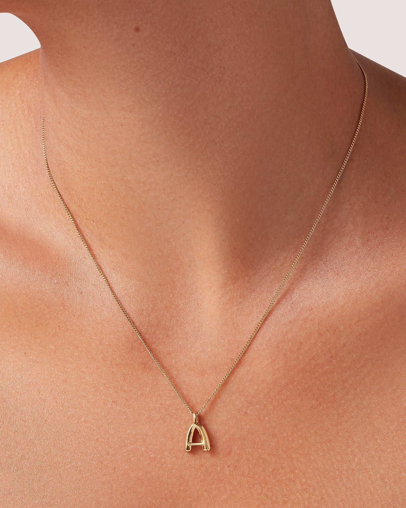 Available in A through Z, these monograms are water-resistant, with the option to strand multiple letters on a single chain. These custom letter pendants embrace a sculptural curve and smooth shape. Each letter is strung along a delicate curb chain that is adjustable to two different lengths (17"or 19") for your preferred fit. Finished in high-polish gold. T