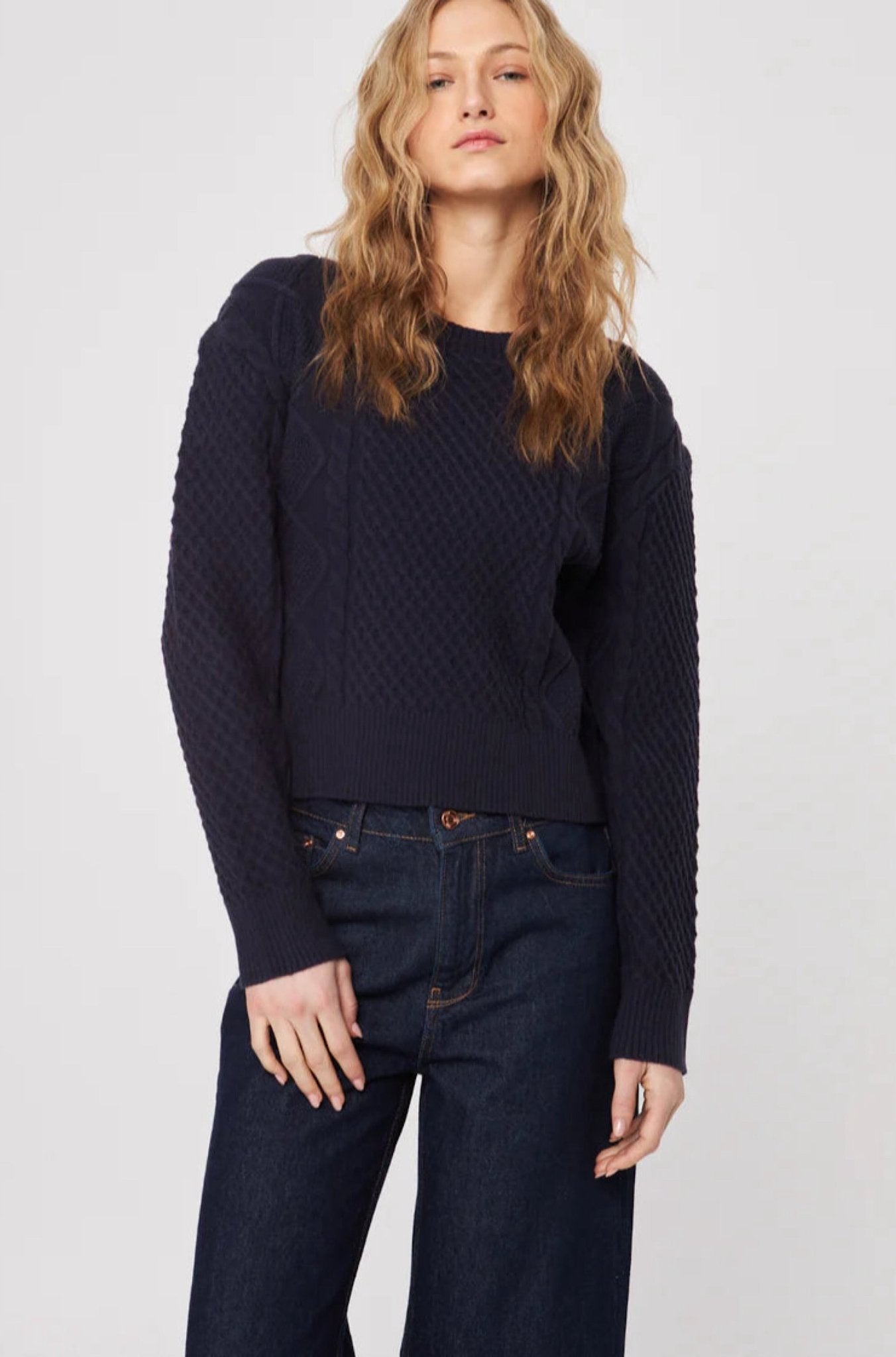 The Julien Sweater combines a rich royal navy hue with expertly crafted knit pattern textures, delivering both visual interest and refined craftsmanship. Designed for a snug fit, it contours comfortably to the body. This sweater blends traditional style with modern precision, making it a perfect new-age classic to add to your fall wardrobe.