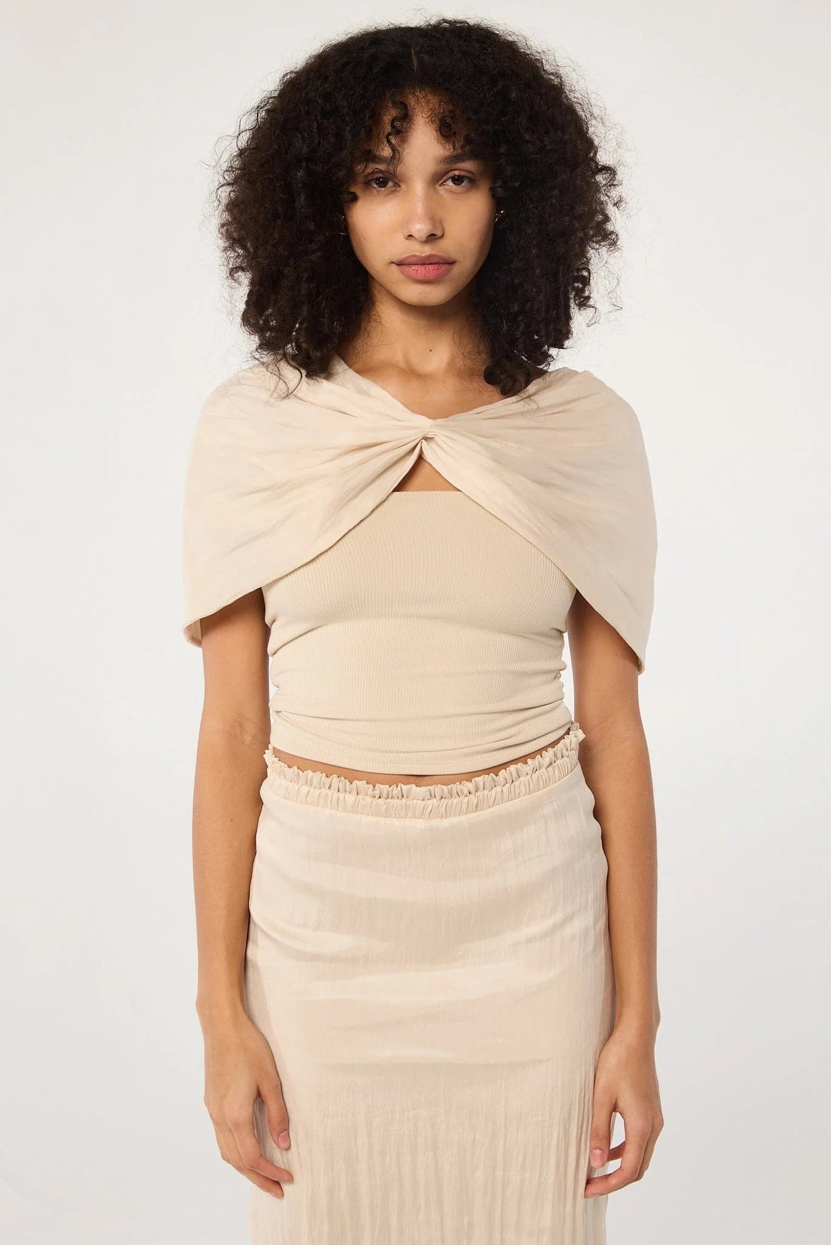 The Elias Cape top is a true definition of modernity and femininity. With a hand-pleated cape that graces the shoulders and a lined stretch tube top for maximum comfort, the Elias Cape top will bring many sartorial options this coming season. Pair with the Libi skirt for a uniform look or with your favorite denim.