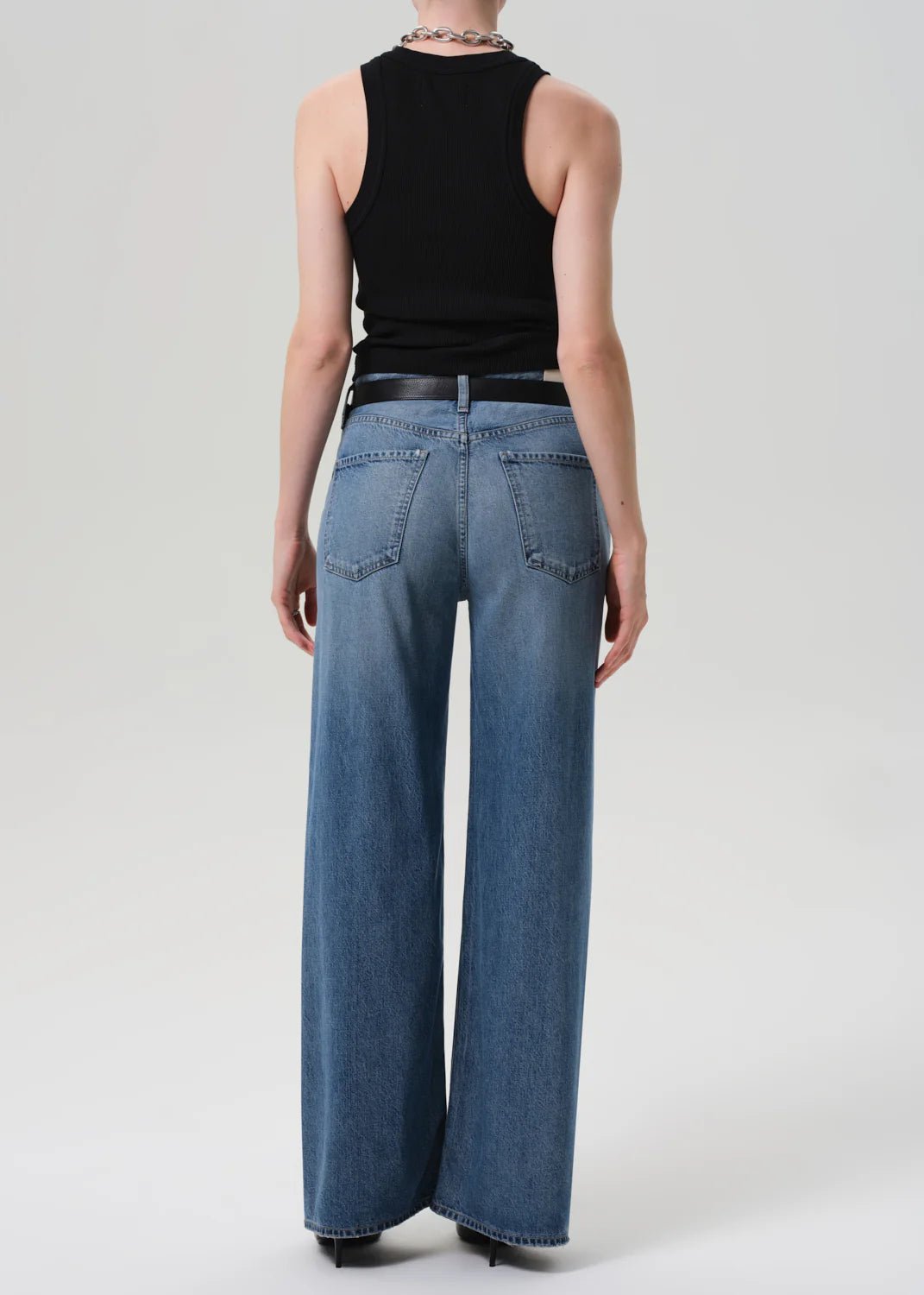 The ‘Paloma’ is a high-rise baggy jean with a wide, full-length leg and a relaxed drape through the hip. Crafted from rigid recycled cotton denim with a soft, broken-in feel, it delivers a vintage sensibility with modern ease. Jete is a classic medium indigo wash—style with a structured blazer or slim tank for contrast.