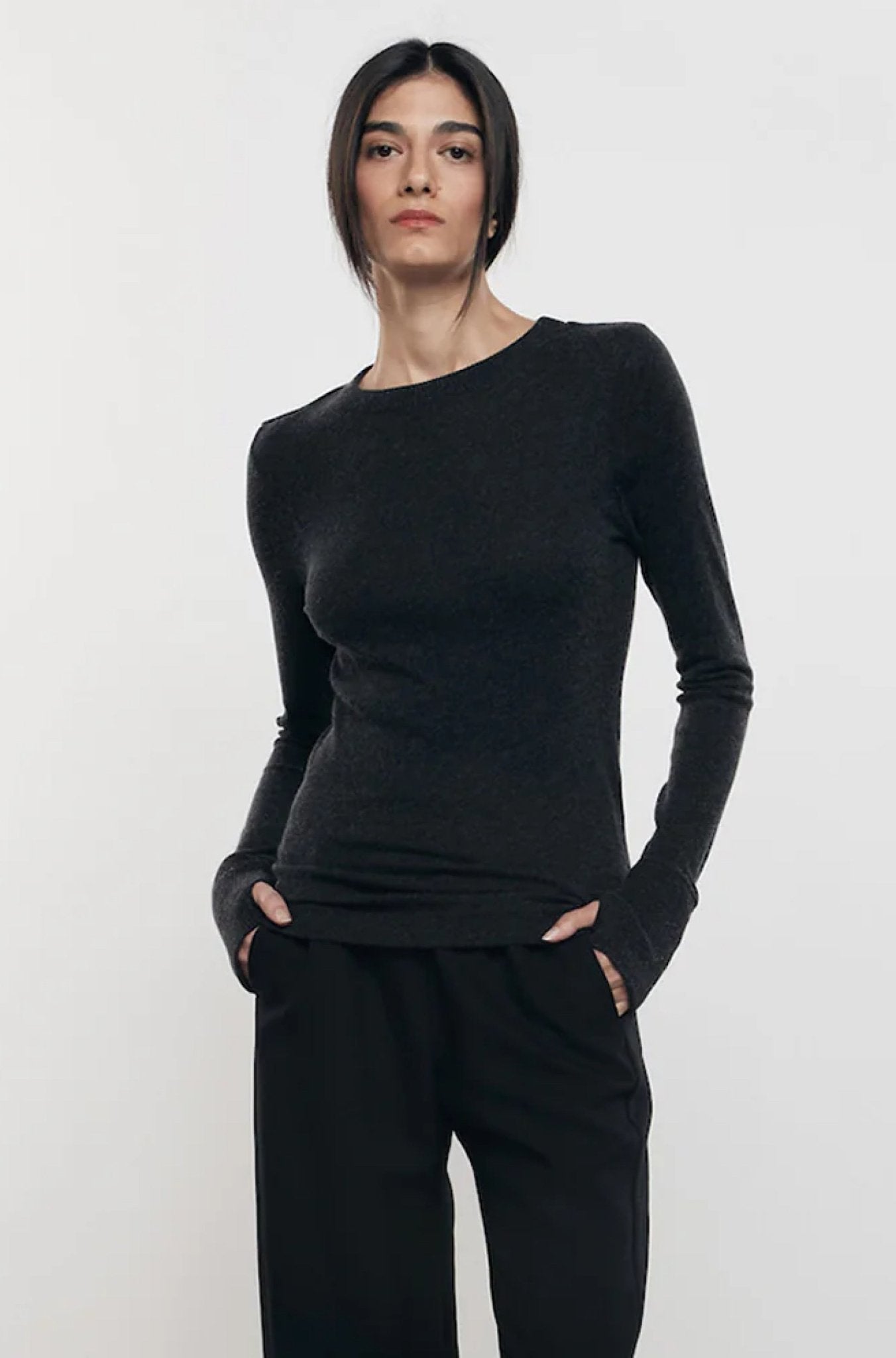 Long-sleeve top cut from the brand's soft cashmere jersey. Easy fit with a crew neckline and thumbholes.