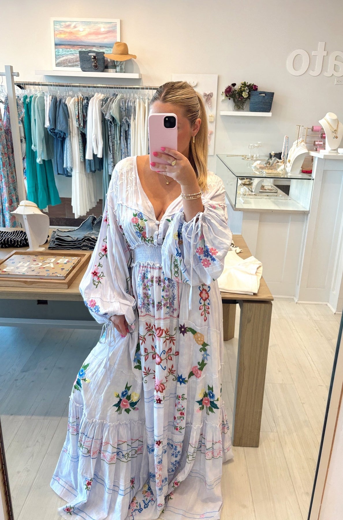 The 'Charm Your Way' maxi dress/duster is crafted from a delicate, luxurious and textured cotton with hand-touched layers of tulle and panels of folk-inspired embroidery. Get swept away in the romance of this dazzling piece, creating a wave of mystery in your wake. This amazing duster features an elastic and drawstring waist and a button-through bodice and skirt that can be worn open as a layering piece adding an unforgettable depth to any outfit.