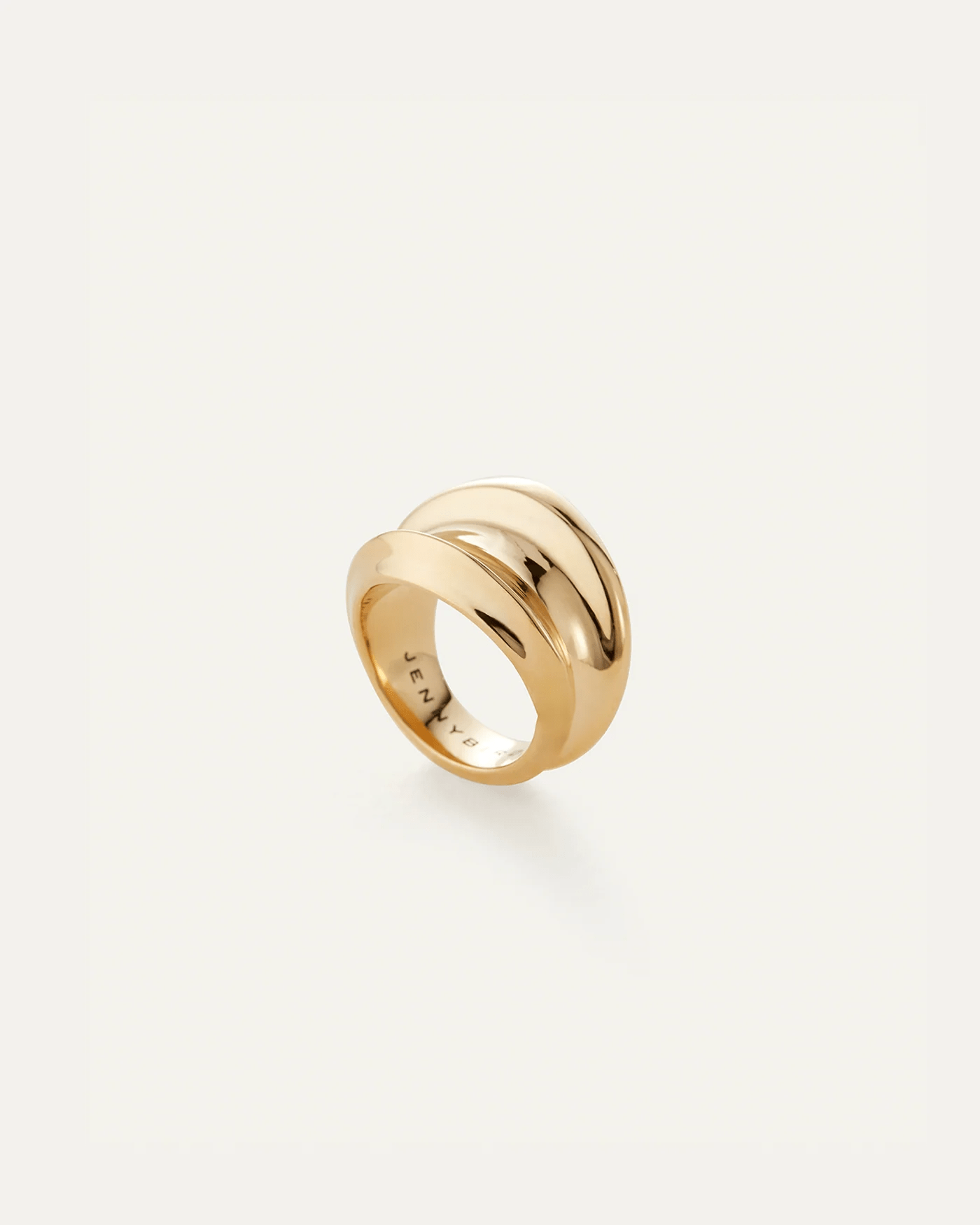 A dramatic statement ring boasting sculptural stretches and organically formed grooves. This gold ring is water-resistant, making it the perfect addition to your jewelry box. Finished in high-polish 14k gold.